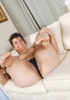 Hairy girl Bianca Stone masturbates on a sofa